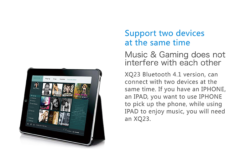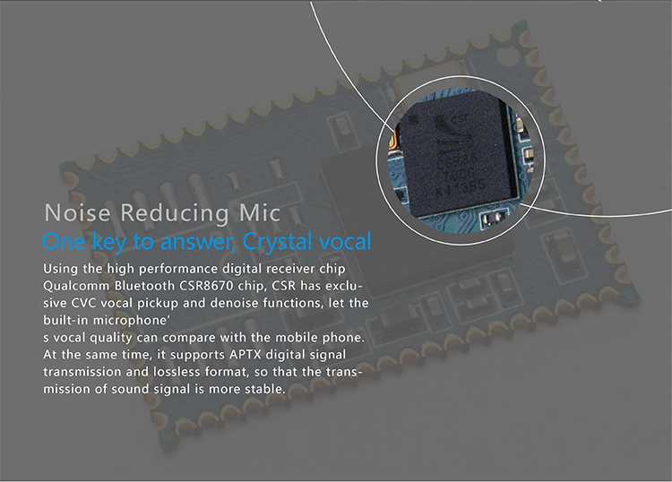 รองรับระบบ Bluetooth 4.1 และ AptX มีไมค์ ปุ่มเพิ่มลดเสียง และปุ่มรับสาย แบตเตอร์รี่สามารถใช้งานฟังเพลงต่อเนื่องได้ประมาณ 5ชั่วโมง