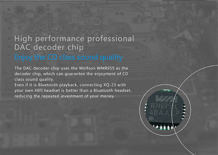 XDUOO XQ-23 รองรับ Bluetooth 4.1 APTX ใช้ชิบ Dac Wolfson WM8955 และชิป Qualcomm CSR8670 ระดับ high-fidelity ของวงการเครื่องเสียง