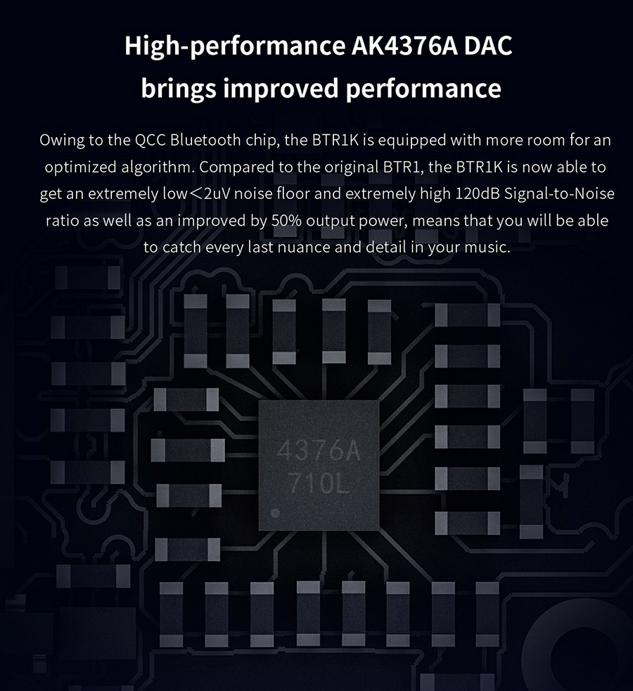 อุปกรณ์นี้ใช้ชิป Dac คุณภาพสูง AK4376A รองรับการถอดรหัสได้สูงสุดถึง 384Khz/32Bit และกำลังขับค่อนข้างสูงสามารถรองรับหูฟังได้ถึงประมาณ 100โอห์ม