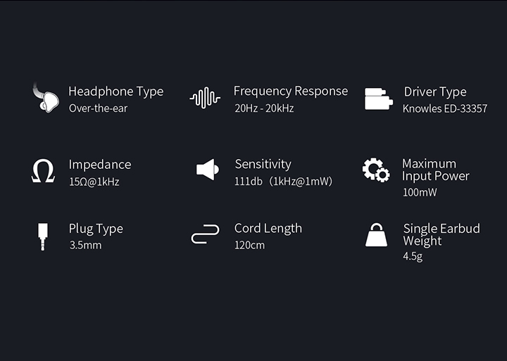 • Weight (per earbud) About 4.5g (excl. the cable)