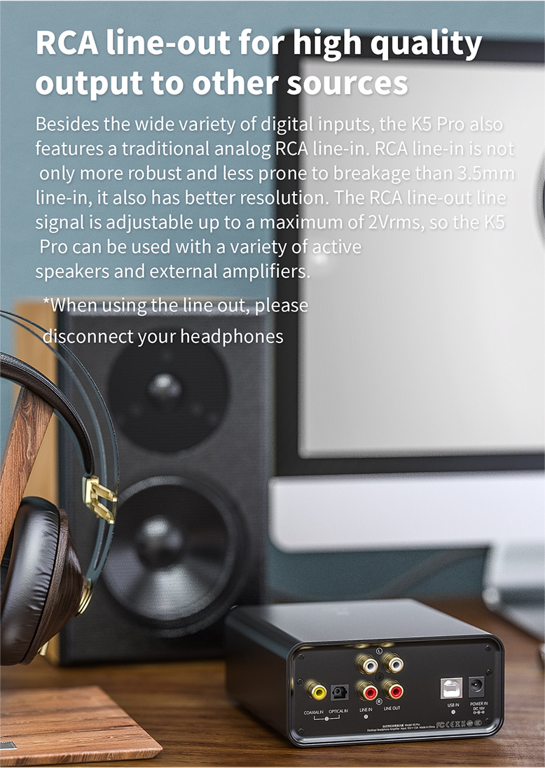 Variety of outputs:6.35mm (1/4 in.) headphone out/RCA line-out