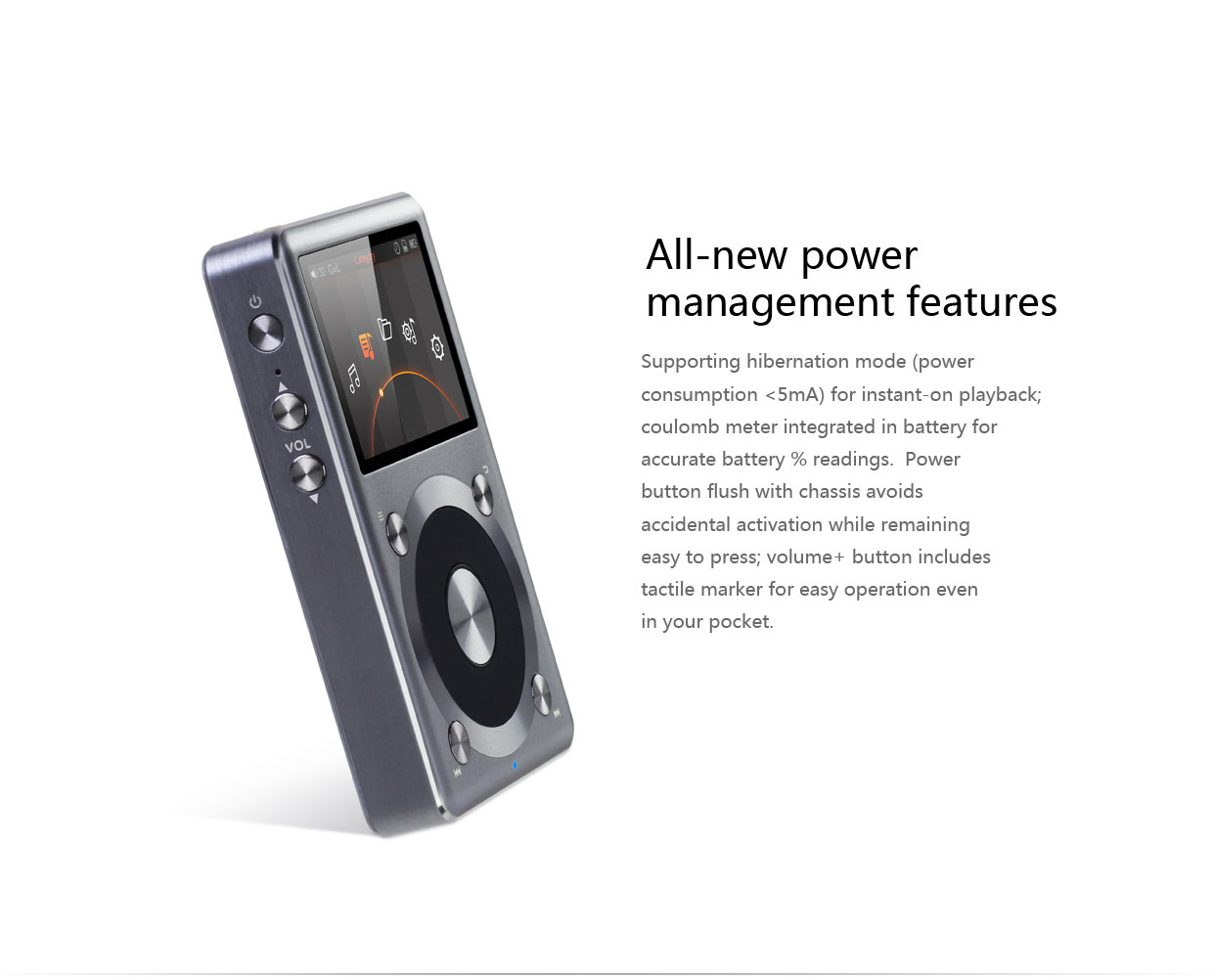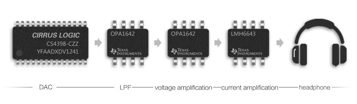 FiiO New X3 ใช้สเปคชิประดับ Audiophile จากค่าย Cirrus Logic รุ่นท้อปอย่าง CS4398 (ชิปตัวนี้อยู่ใน DAP ระดับราคาหลายหมื่น เช่น AK120ii , AK240 เป็นต้น) นอกจากนี้ OPAMP ก็ไม่ธรรมดา เพราะให้ OPA1642 x2 + LMH6643 มาในตัว (ภาคแอมป์เหมือน FiiO E18) เพื่อคุณภาพเสียงที่ดีที่สุด และคุณภาพของเสียงเครื่องดนตรีสมจริง ระดับ Audiophile