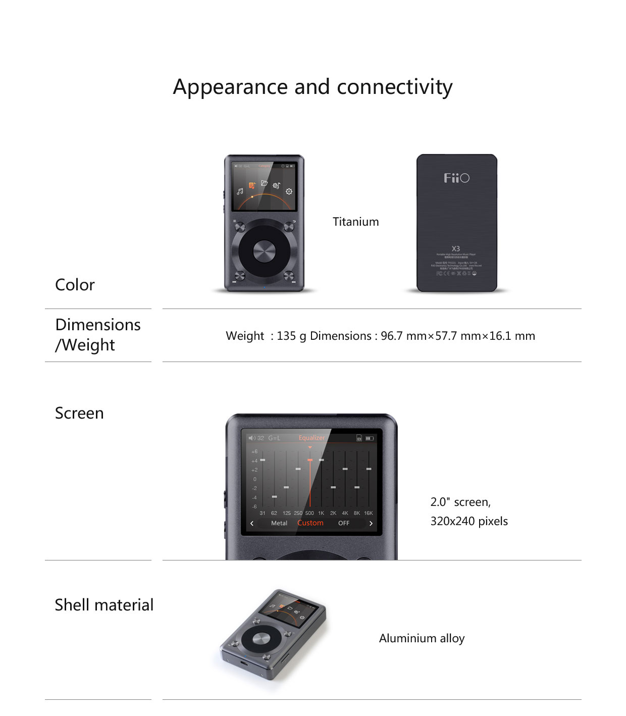 FiiO X3 เชื่อมต่อได้หลากหลายช่องทาง ดังนี้