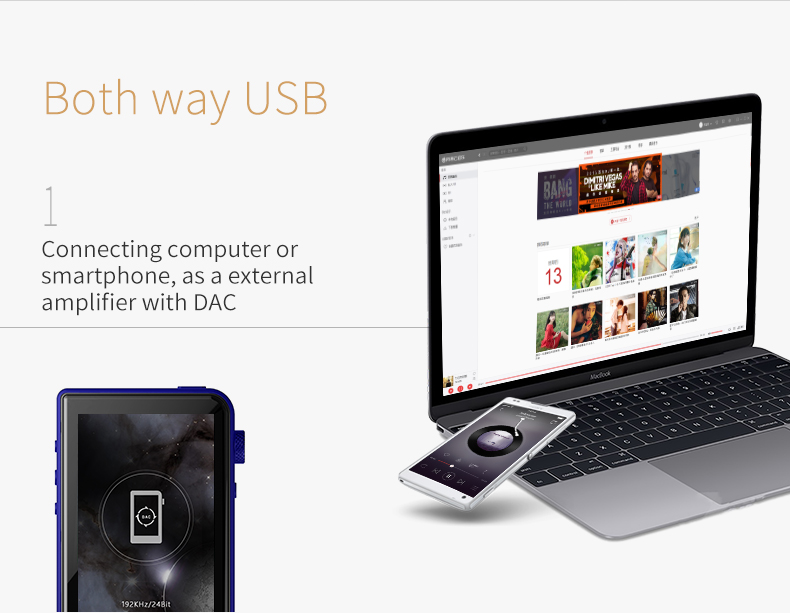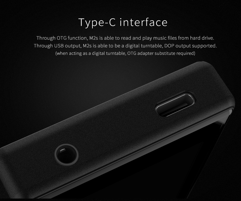 รองรับ USB Type-C M2S สามารถรองรับ OTG ด้วยการเล่นเพลงจาก Harddisk ผ่าน USB โดยสามารถรับสัญญาณดิจิตอลเพื่อเล่นเสียงได้