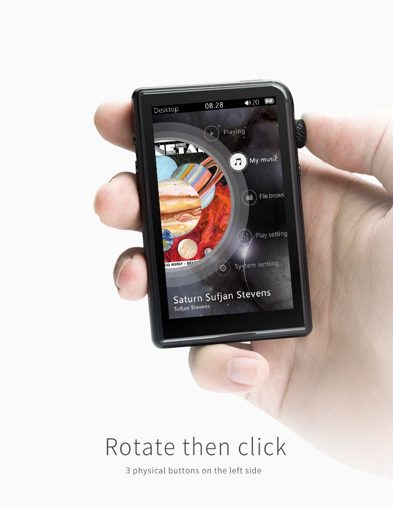 ใช้งานง่ายไม่ยุ่งยาก ทางฝั่งซ้ายของเครื่องเล่นมีปุ่มควบคุมการเล่นอยู่3ปุ่ม เอาไว้สำหรับควบคุมการเล่นเพลงหรือเปลี่ยนเพลงได้อย่างง่ายดายโดยไม่ต้องมอง ส่วนด้านขวาเป็นวอลุ่มใช้หมุนสำหรับเลือกเมนูและกดคลิกเพื่อตกลง