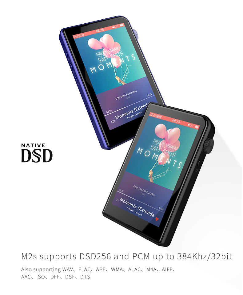 Shanling M2s คือสุดยอดเครื่องเล่นเพลงพกพา DAP DAC ที่ใช้ชิ้นส่วนภายในระดับ Hi-end อย่าง AKM AK4490EQ DAC ซึ่งรองรับการถอดรหัส DSD 256 และภาค Op amp ของ Muse8920 รองรับการเล่นเพลงผ่านไฟล์ lossless DSD MP3 ตัวเครื่องเล่นมี Bluetooth ในตัวเป็นบลูทูชแบบสองทาง ทำให้รับและส่งสัญญาณได้พร้อมกัน จึงส่งสัญญาณได้ไวกว่าดีเลน้อยกว่า มาพร้อมหน้าจอแสดงผลระดับ HD แบบ เรติน่า 3 นิ้ว สีสวยสดใส ตัวเครื่องเล่นสามารถใช้งานเป็น DAC สำหรับคอมพิวเตอร์ช่วยเพิ่มคุณภาพเสียงเสมือนมีการ์ดเสียงหรูๆอยู่ในเครื่อง ส่วนที่ด้านหน้าและหลังของตัวเครื่องเล่นมีกระจกกันรอยติดมาให้ทั้งสองด้านเป็นแบบ 2.5D ตัวเครื่องมีขนาดเล็กน้ำหนักเบาพกพาได้ง่าย และสามารถใช้งานฟังเพลงได้ต่อเนื่องนานประมาณ 9 ชั่วโมง