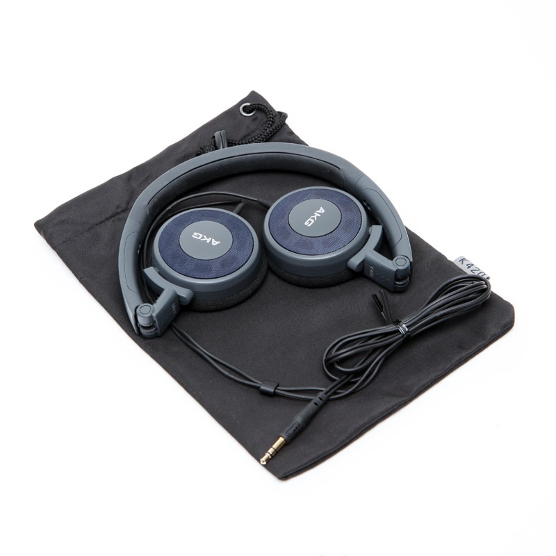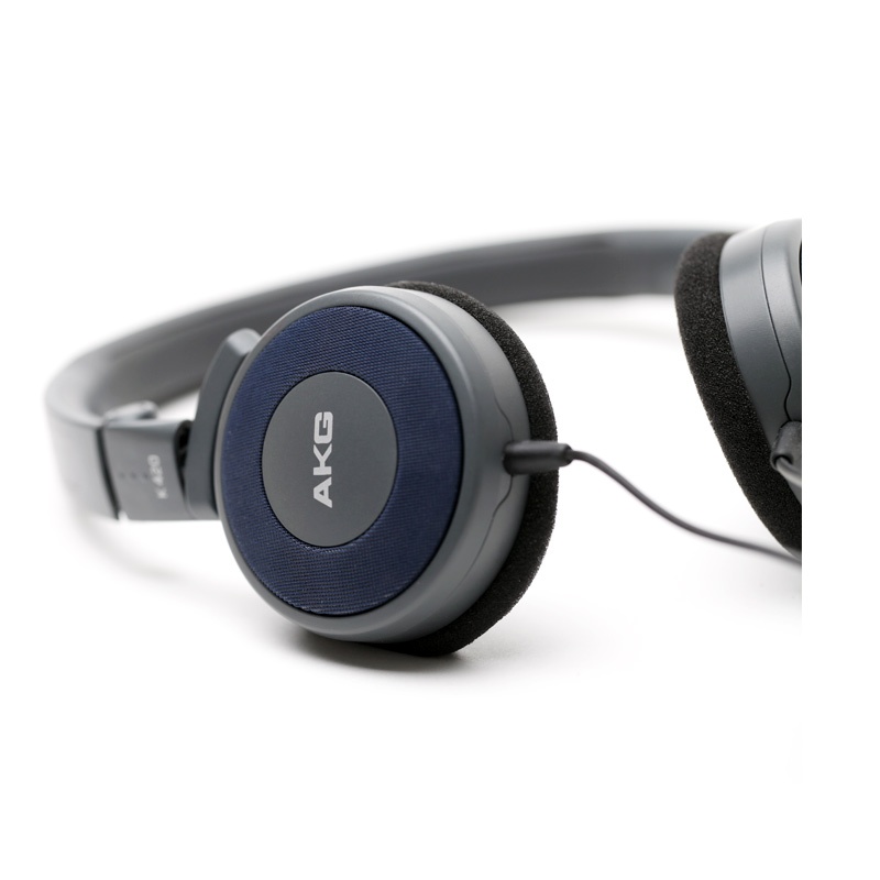 The K 420 On-ear headphones are the ideal upgrade to any portable device The K 420's have a comfortable fit with great AKG sound Perfect for everyday use Fold and Go, Unfold and Settle In When you want to take your personal listening experience to the next level, the AKG K 420 mini on-ear headphones let you do it in style. Their comfortable ear pads and headband are perfect for everyday use. They feature a lightweight design with a unique 3D-axis folding mechanism that allows you to store them in a small carrying pouch (included with the headphones). The K 420’s will connect to virtually any portable audio device, including an older iPhone. And when it comes to style, you’ll definitely stand out, thanks to the headphones’ blue-denim design.
