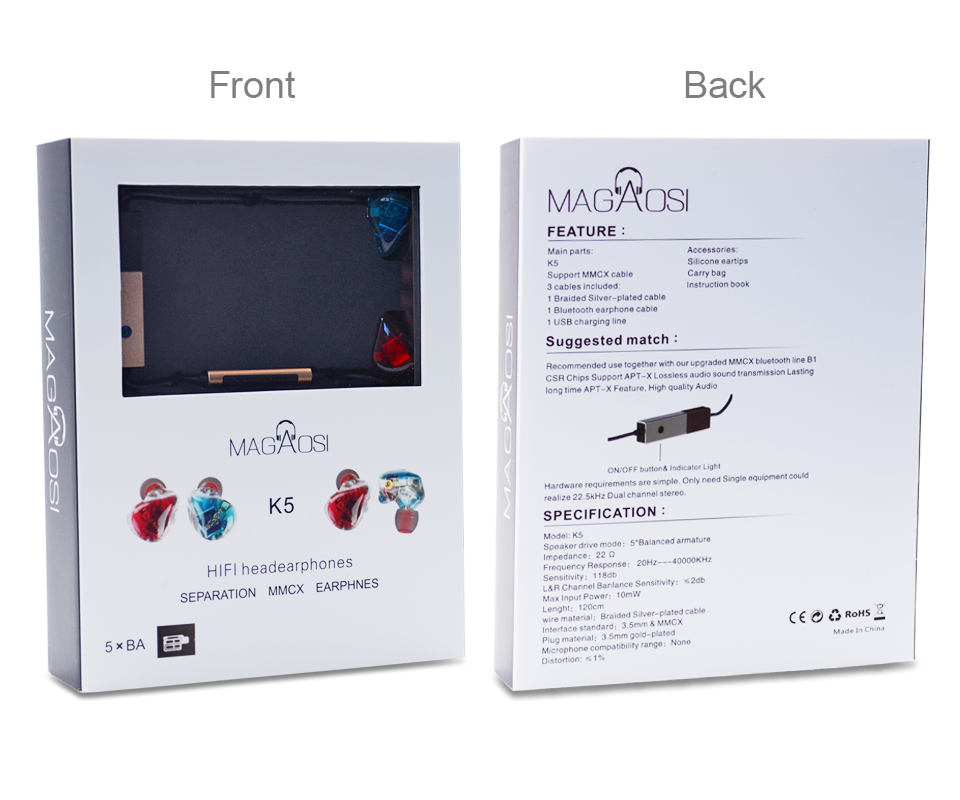 หูฟัง Magaosi K5 หูฟังแบบ 5 ไดรเวอร์ 5BA Audiophile MMCX มีสายให้เลือกทั้งแบบธรรมดา และแบบ Bluetooth